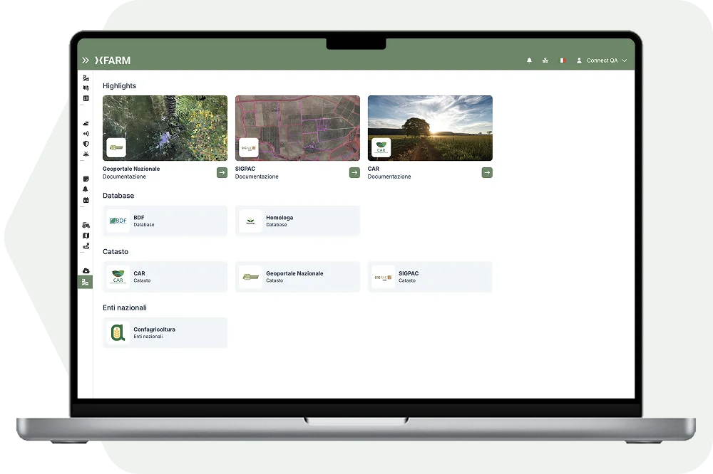 xFarm , tarımsal planlama, çevresel izleme ve coğrafi bilgi yönetimini desteklemek amacıyla dokümantasyon, mekansal veriler, haritalama ve GIS altyapılarına yönelik xFarm ve hizmetler sunar. Ulusal Coğrafi Bilgi Portalı gibi örnekler bunlara dahildir.